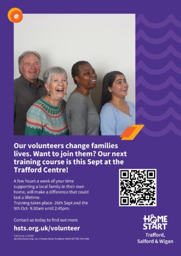Home Start are excited to share the details of their new volunteer training happening this September at the Trafford Centre.